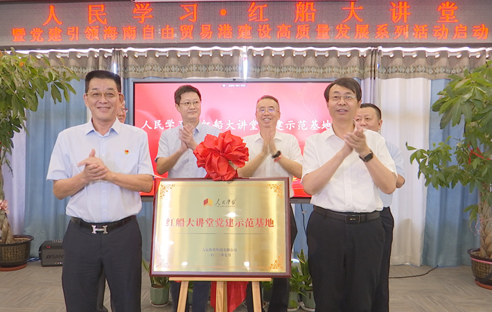 隨后,“人民學(xué)習(xí)·紅船大講堂暨黨建引領(lǐng)海南自由貿(mào)易港建設(shè)高質(zhì)量發(fā)展系列活動”正式啟動,呂鴻、林躍為“人民學(xué)習(xí)·紅船大講堂黨建示范基地”揭牌。