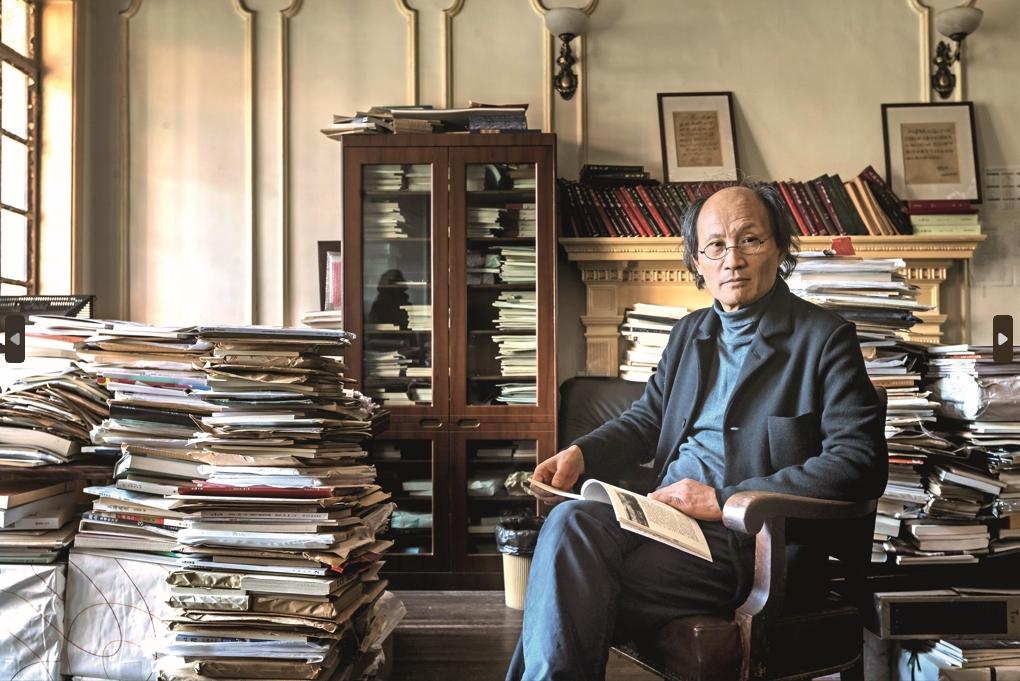 “我不上相,每次都照得很兇。”金宇澄起身,在堆了書籍雜志的辦公桌上拿起眼鏡,整理一下黑色外套,回到原處坐下,他時而低頭看書,時而凝視前方,平靜的臉上添了微笑,等看到相機里的照片時,他低語:“好像還是不笑的好”。