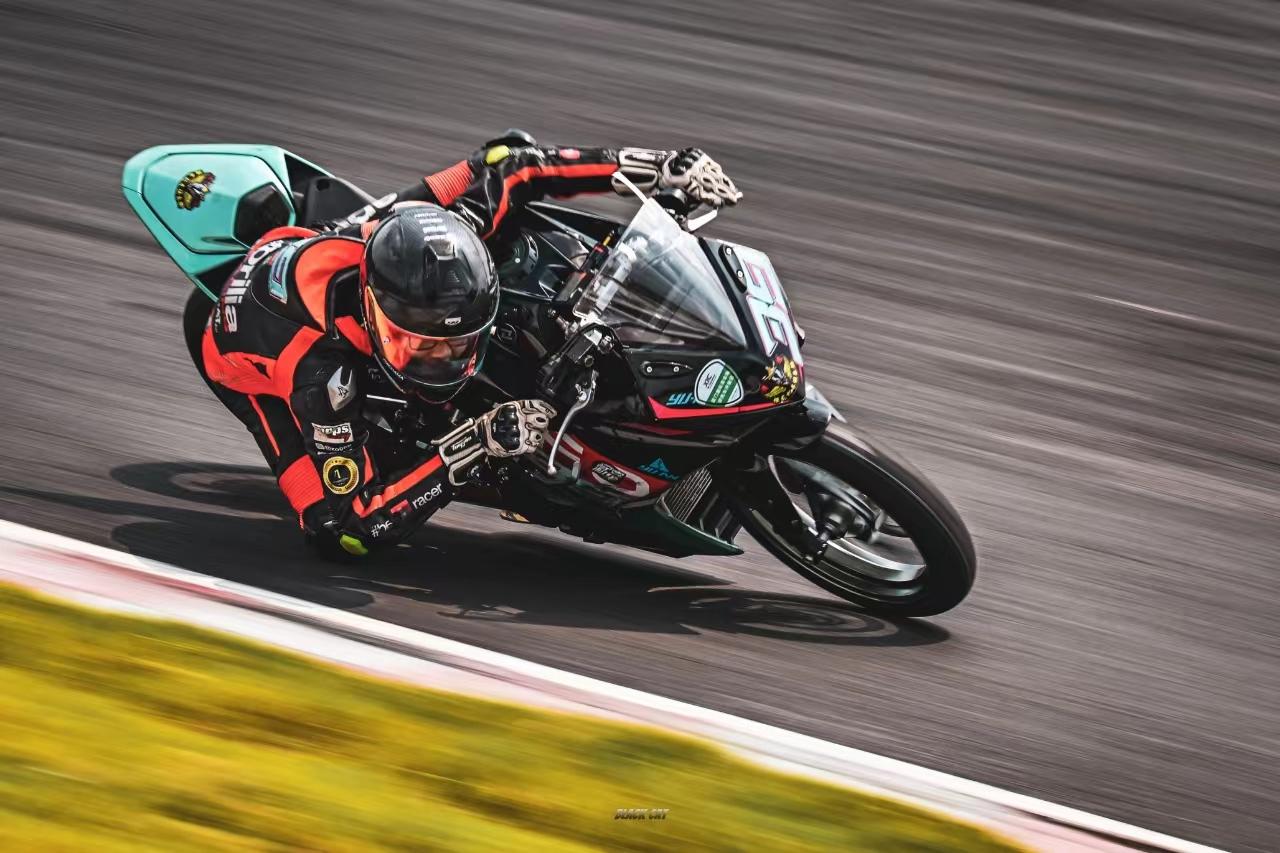 起初,郭小蓬是賽車俱樂部的助教。“其實(shí)摩托車行業(yè)的工資一般比較低,但是可以接觸到賽車,所以他就在上班期間開始慢慢接觸賽道練車,對(duì)他來說這可能離自己的夢(mèng)想更近了一步。”