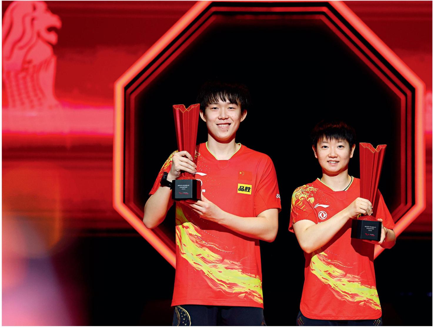 2023年3月,在2023年WTT新加坡大滿貫賽混合雙打決賽上,王楚欽(左)和孫穎莎贏得冠軍,二人將繼續(xù)組合出征巴黎。