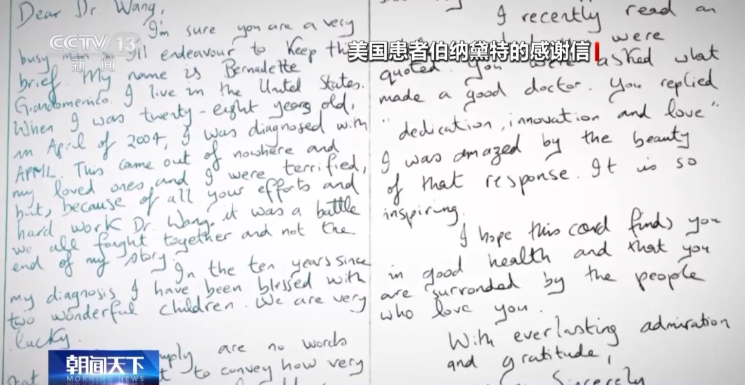 美國患者伯納黛特在信中寫道:“由于您的努力和付出,我的生命得以延續(xù)。而且我現(xiàn)在還有了兩個孩子,特地寫信感謝您的付出和貢獻(xiàn),我想即使對您說一百萬次的感謝也仍然不足以表達(dá)我的謝意。”