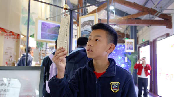 在文創(chuàng)空間,庫車本地4名小學(xué)生為寧波師生朗誦《琵琶行》,抑揚頓挫的朗誦贏得師生們的熱烈掌聲。 在文創(chuàng)產(chǎn)品展區(qū),學(xué)生們了解了《鼓舞中華》《絲路寶船》《我的中國》紀念珍藏卡牌和《英雄開路》等文創(chuàng)產(chǎn)品承載的深刻寓意,激發(fā)學(xué)生的愛國情懷、凝聚共同體意識。 在《手機上的中國世界文化遺產(chǎn)》攝影展區(qū),學(xué)生們近距離欣賞“中國手機攝影第一人”王劍波歷時9年,走遍全國,拍遍了包括克孜爾尕哈烽燧、蘇巴什佛寺遺址在內(nèi)的55處世界自然與文化遺產(chǎn)。