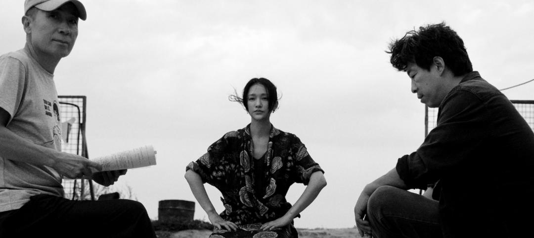 周迅與導(dǎo)演曹保平、演員黃渤在《涉過(guò)憤怒的?!放臄z現(xiàn)場(chǎng)。