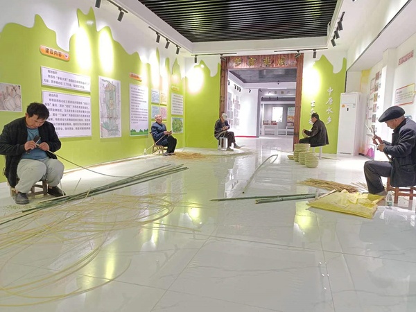 手藝人在竹編博物館內(nèi)展示竹編技藝。(界首市委宣傳部供圖)