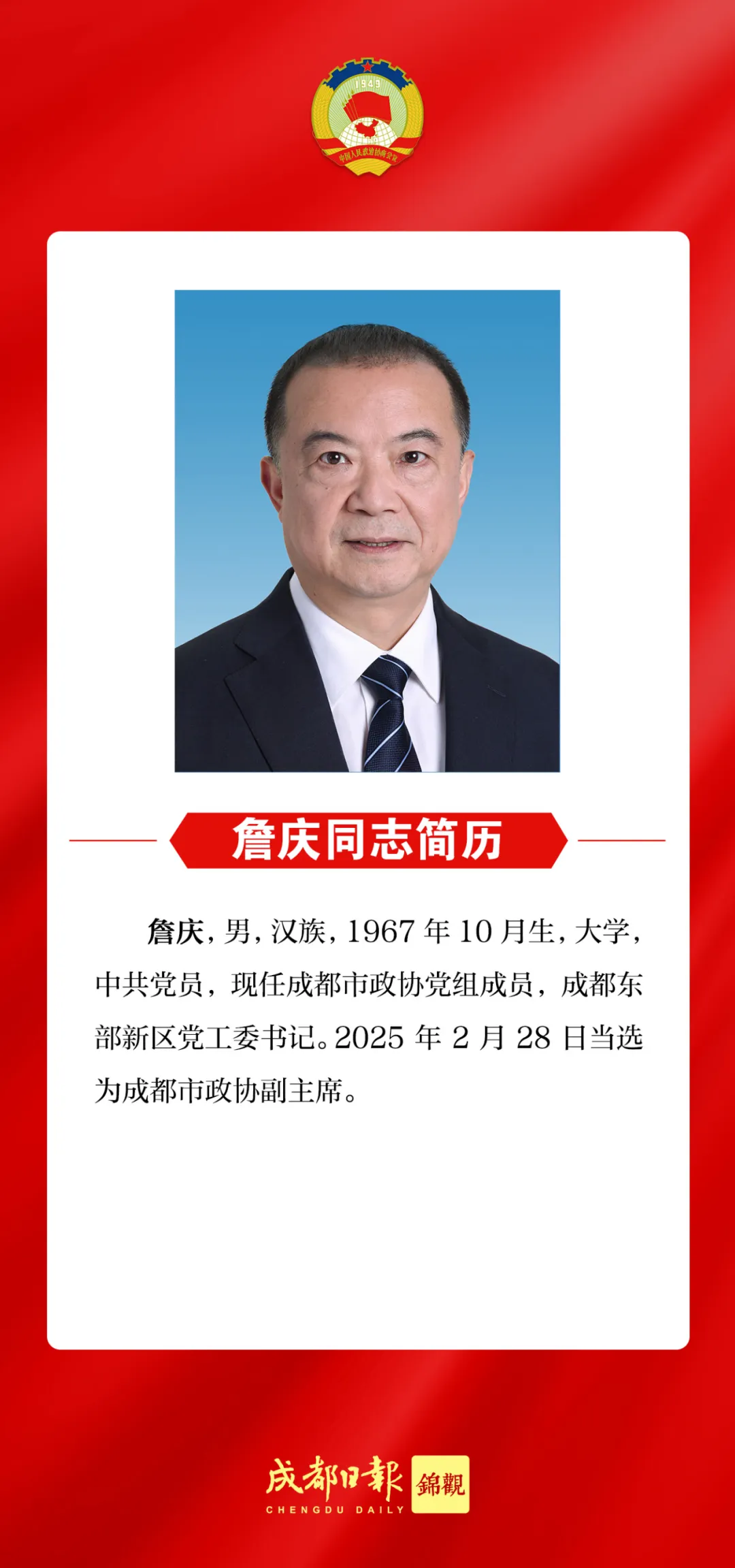 (2025年2月28日政協(xié)第十六屆成都市委員會第三次會議選出)