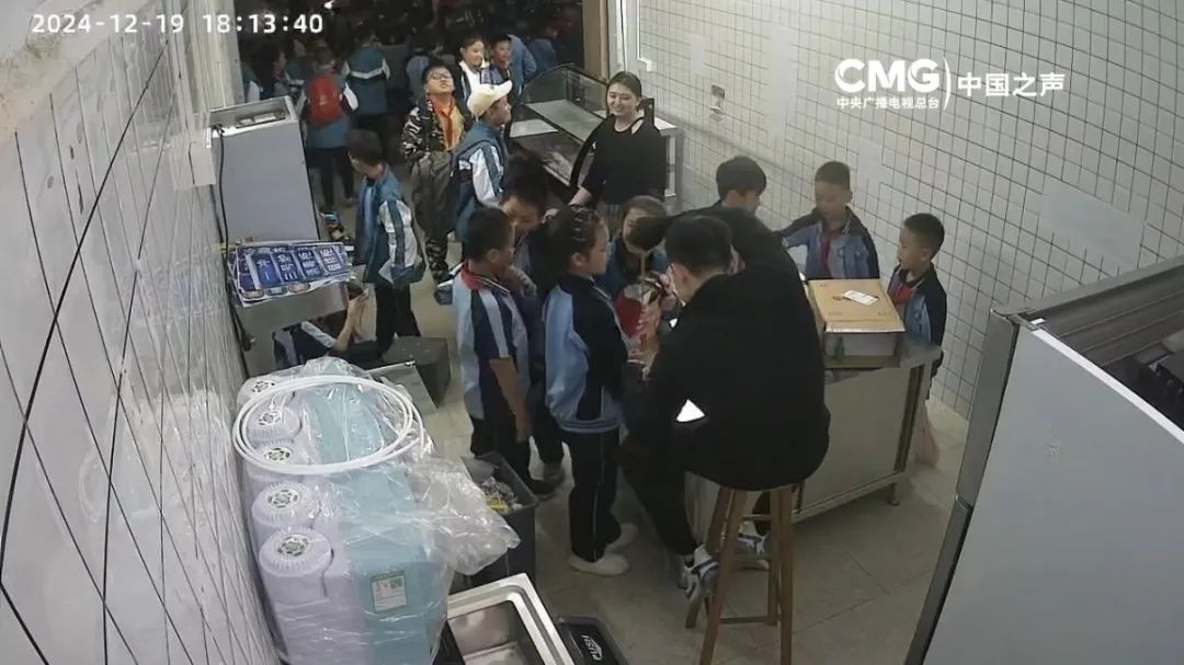 2024年5月23日11點(diǎn)14分,阿娟睡過(guò)了頭,孩子們把門(mén)敲得山響。等卷簾門(mén)徐徐上移,一群小學(xué)生涌進(jìn)了店里。夫妻倆覺(jué)得好玩兒,把這段監(jiān)控視頻發(fā)到了網(wǎng)上,視頻火了。