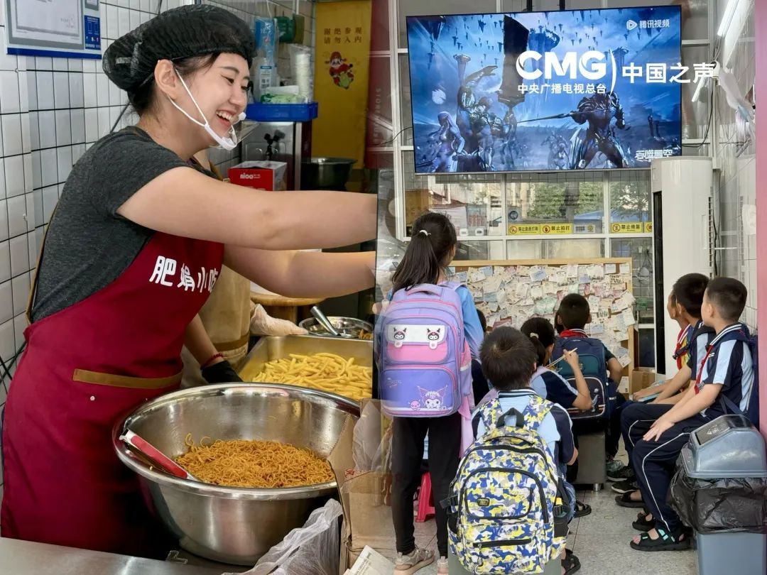 中午時(shí)分,遂城三小的孩子蜂擁而至,端好了火雞面、薯?xiàng)l、淀粉腸,下一步是在電視機(jī)前占個(gè)好位置,邱智娟的丈夫林景歡已經(jīng)提前續(xù)上了前一天的動(dòng)畫(huà)片。