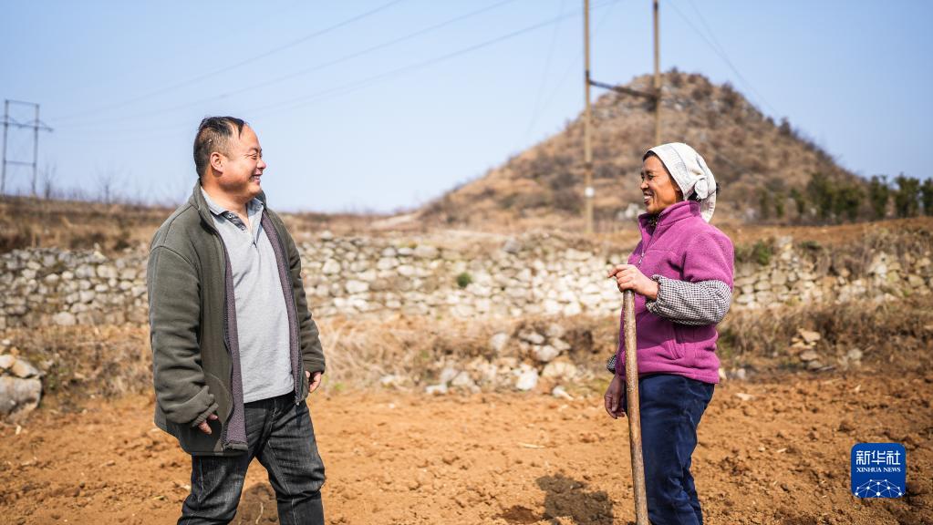 李世瑤(左)向中箐村村民了解春耕備耕情況(2月26日攝)。