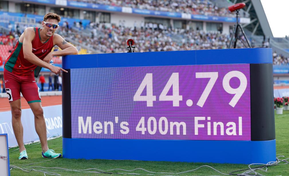 當(dāng)天田徑項(xiàng)目男子400米決賽上演“神仙打架”,最終葡萄牙選手科埃略以44秒79的成績獲得金牌,并打破賽會紀(jì)錄。
