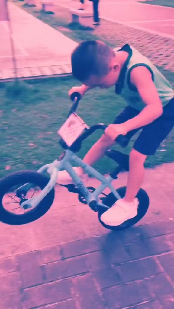 ↑父親用手機(jī)記錄下劉浩冉小時(shí)候練習(xí)小輪車的畫面
